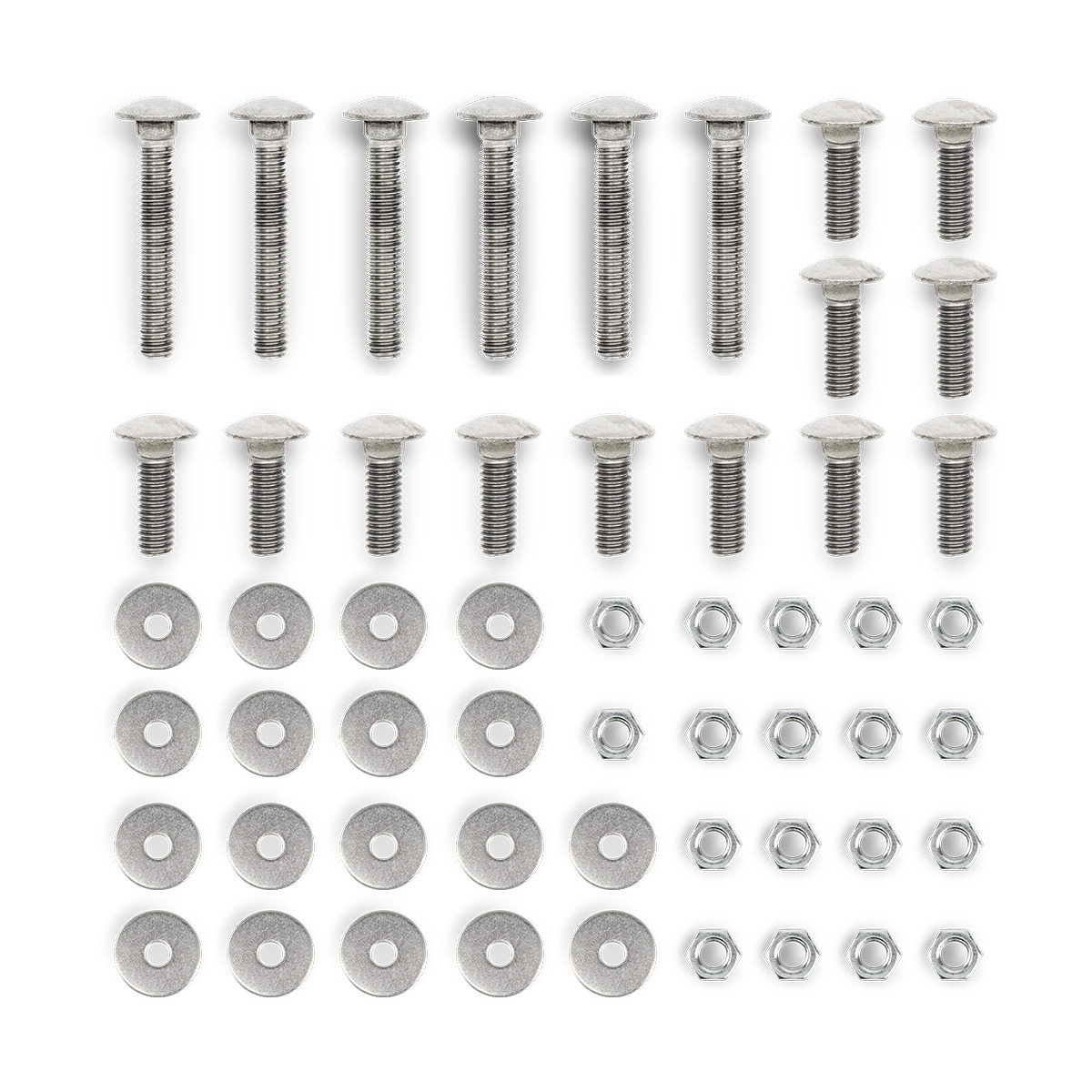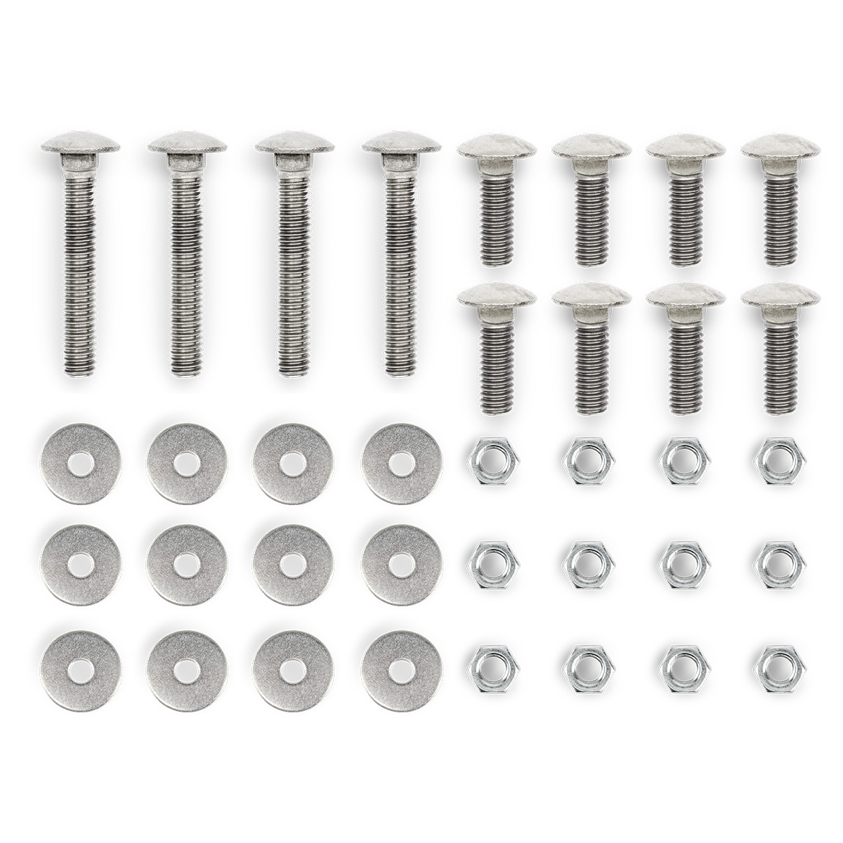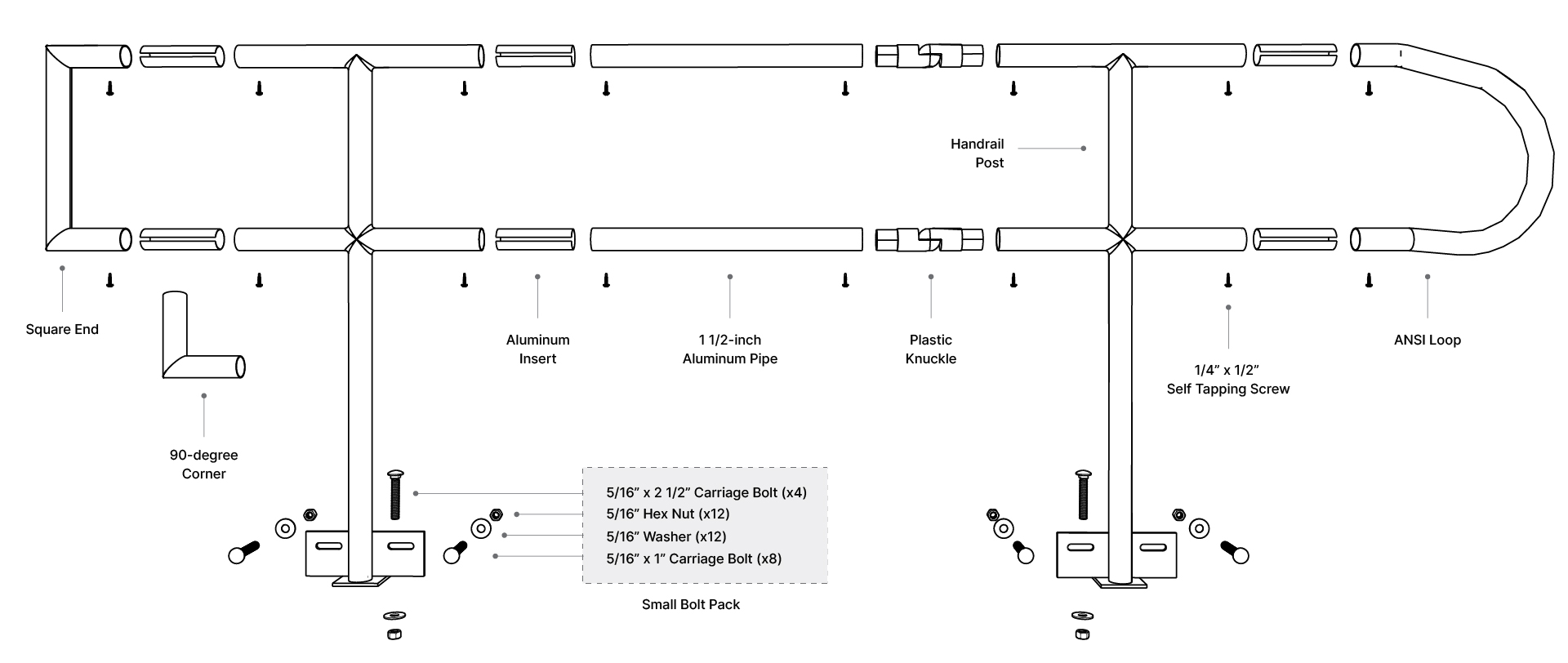 Small bolt packs include all necessary hardware for attaching a set of handrails (four handrail posts) to a ramp or platform.