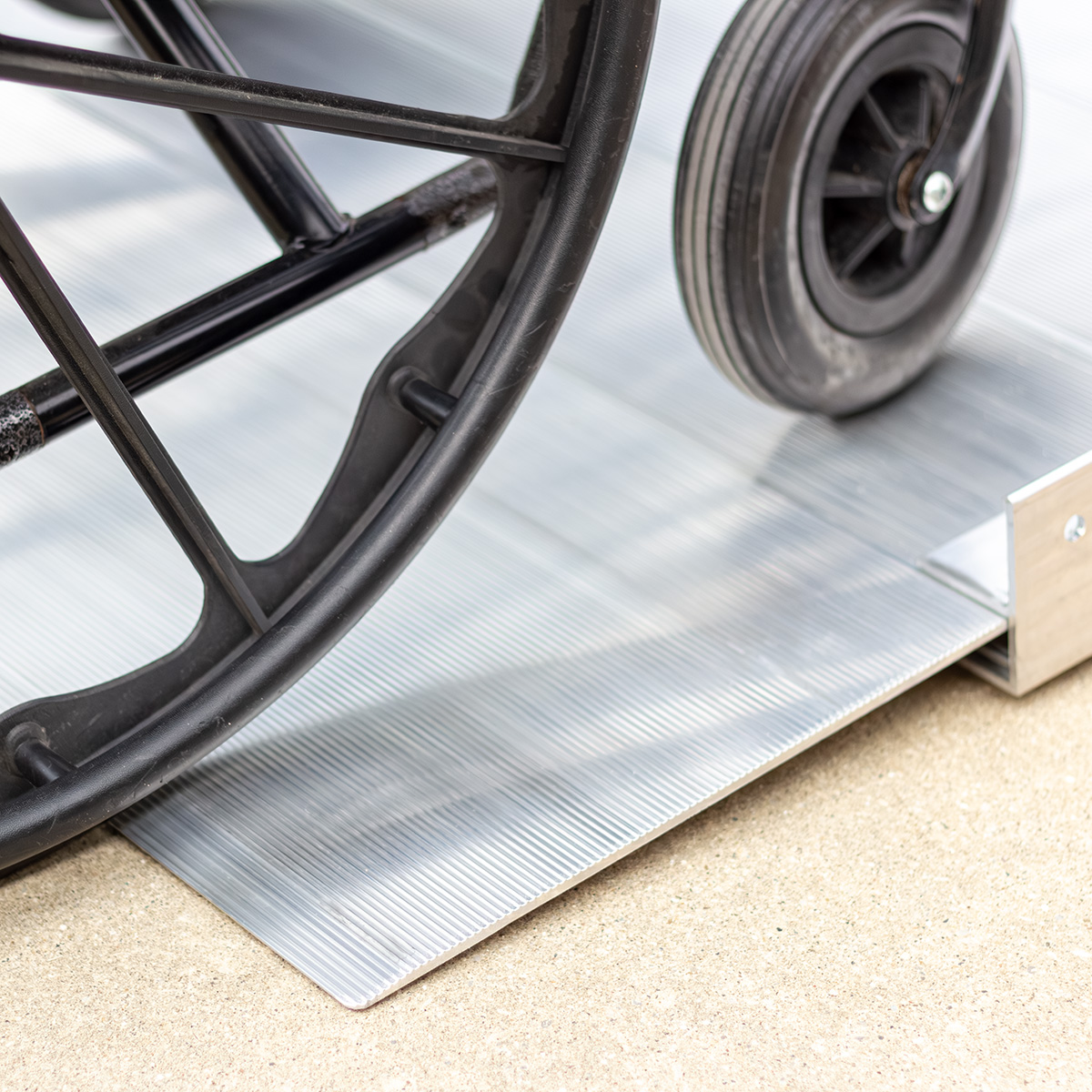 The self-adjusting bevel is installed at the start of every Rampit USA ramp and ensures a smooth transition on or off the ramp.