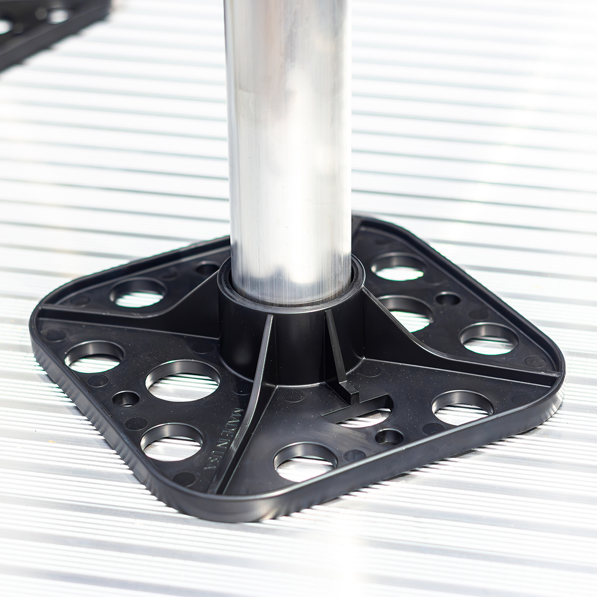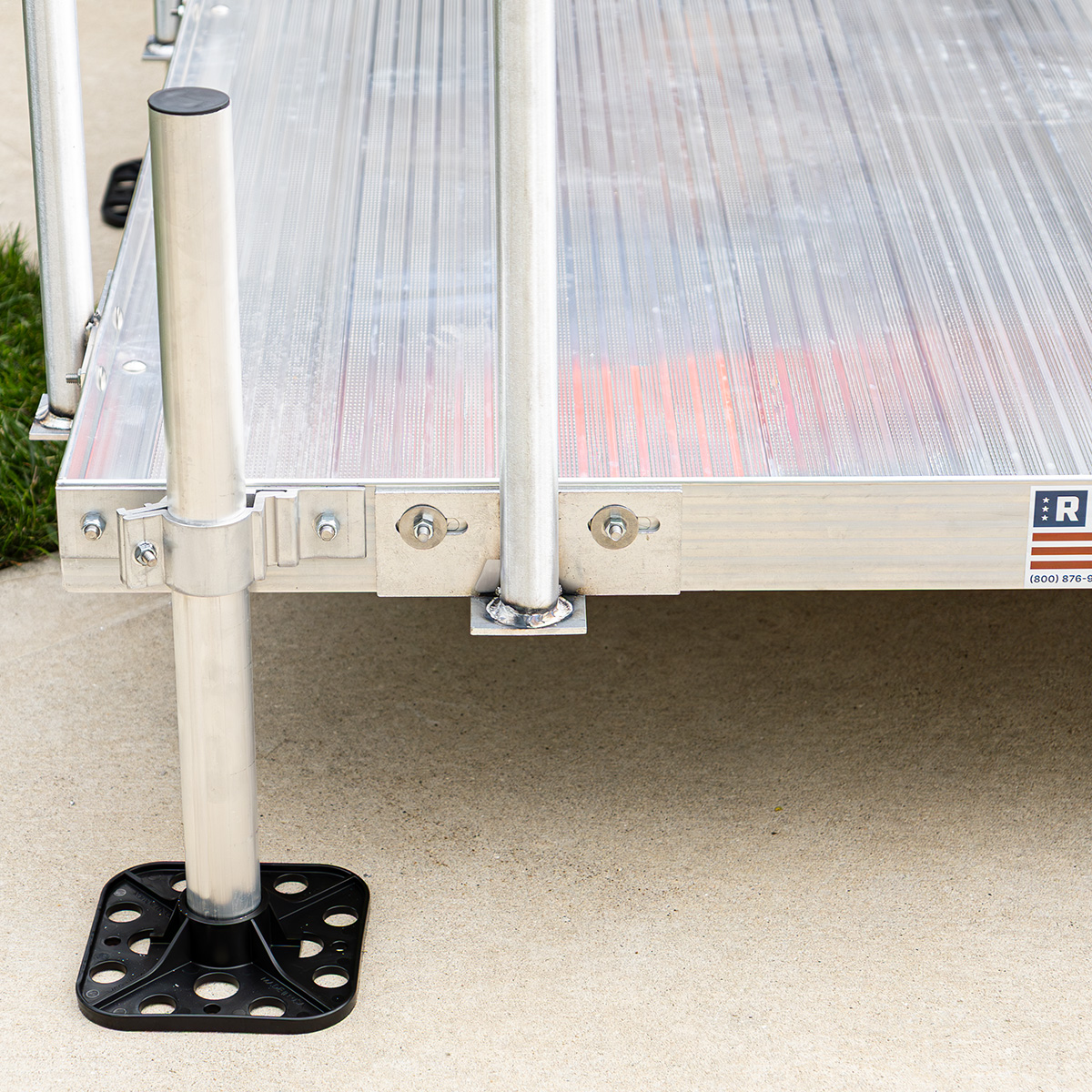 Composite footpads create an 8-inch footprint to distribute the ramp’s weight and prevent damage to your yard.